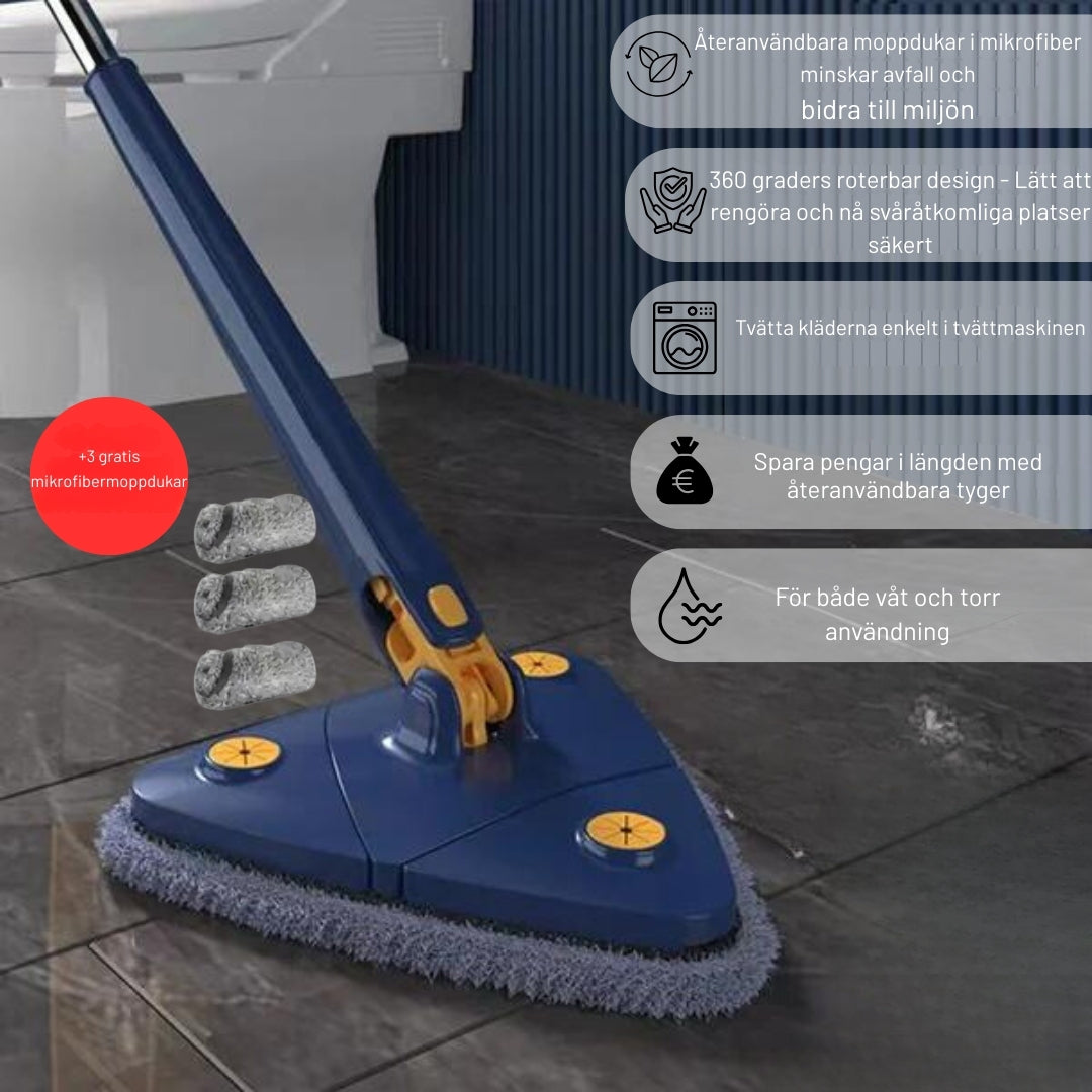 Inga blöta händer, inget böjande eller frustration längre. LättMopp är designad för moderna hem som värdesätter tid, komfort och renlighet. Med sitt unika triangulära huvud, kraftfulla mikrofiber och teleskopskaft rengör du varje hörn skinande rent – utan ansträngning.